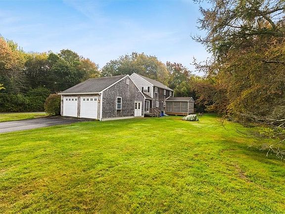 Step into classic New England charm at 7 Gadsby Lane — a spacious four-bedroom Colonial built in 1975, set on a generous corner lot just under half an acre. Offering nearly 2,000 square feet of living space, this well-maintained home blends traditional character with a versatile layout ideal for both everyday living and entertaining. Inside, you’ll find an updated eat-in kitchen featuring warm wood cabinetry, granite countertops, and ample space for casual dining. The main level also includes a formal dining room, a living room with a working brick fireplace, a cozy den, and the convenience of first-floor laundry tucked into the half bath. All four bedrooms are located together on the second level, along with an updated full bath showcasing a tastefully tiled shower. Outside, the home features timeless cedar shake siding, a large 24' x 24' two-car garage, and a screened-in porch—perfect for enjoying the afternoon sea breeze. Located in one of Tiverton’s most peaceful neighborhoods, you're just minutes from the charm of historic Tiverton Four Corners, offering the perfect balance of privacy and convenience.
