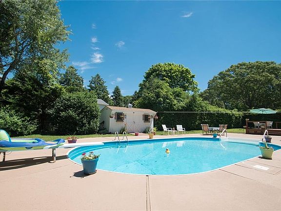 Located on a corner lot, 7 Gallup Street in Westerly, RI, is a beautifully maintained 3 BR Ranch. New roof in June 2017! The freshly seal-coated driveway enters the two car garage on the side of the house. The 18'x18' wood deck overlooks the 38'x17'patio surrounding the swimming pool. The depth of the pool is 8' at the diving board for all of your cannonball enthusiasts! Chain link fence is hidden by the Hemlock trees providing privacy for your pool parties. A natural gas connection from the house ensures that your grill will never run out of fuel! The front door is a center entrance into a tiled foyer with a coat closet immediately available. The vaulted cathedral ceiling with two skylights projects spaciousness in the living room. Past the living room through a wide doorway is the dining room with sliders to the deck. The kitchen is complete with stainless steel refrigerator, dishwasher, oven/range and microwave.