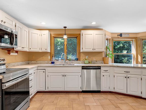 Just two miles from Sebago Lake and three miles from Raymond Beach, this 3-bedroom, 2.5-bath home offers a peaceful wooded setting with easy access to local amenities. The first floor features a spacious living room filled with natural light and warmed by a cozy wood stove. The kitchen boasts granite countertops and ample workspace, flowing into the bright dining area. A convenient pantry, home office, and a half bath with laundry round out the main level. Upstairs, the primary suite includes a walk-in closet and private bath. Two additional bedrooms share a full bath, providing comfort and flexibility for family or guests. Outdoor living is just as inviting. Unwind on the expansive back deck and take in the sunset, or retreat to your own private in-ground pool, surrounded by natural landscaping. The pool area also offers a screened room and pool shed for added functionality. This thoughtfully designed home blends everyday comfort with a true sense of retreat—an ideal spot to enjoy all that Maine living has to display.