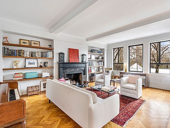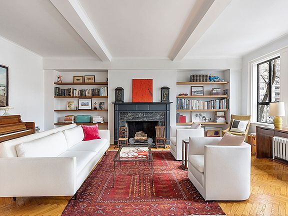 Pre-war detailing throughout: high ceilings, crown moldings and beautiful herringbone oak and walnut floors
