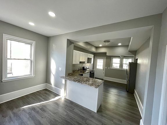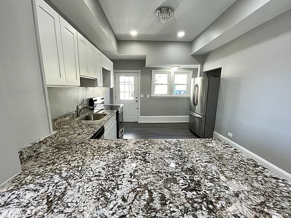 - Features: Flooring - Vinyl, Breakfast Bar / Nook, Exterior Access, Open Floorplan, Recessed Lighting, Remodeled, Peninsula, Decorative Molding