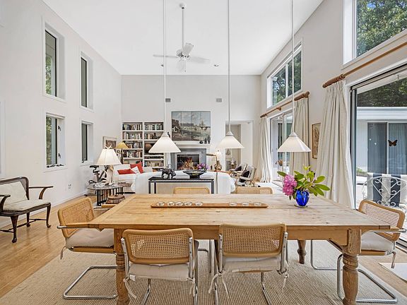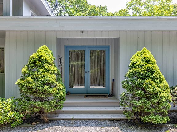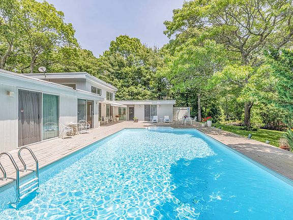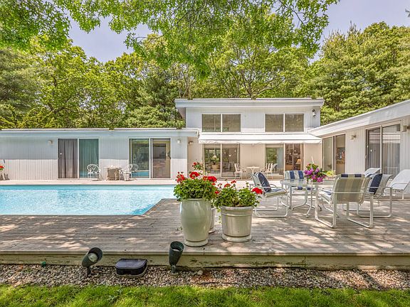 This sun-drenched contemporary home is located just moments from East Hampton Village shopping and restaurants. At the end of a quiet cul-de-sac just outside of the Village, the home boasts soaring ceilings and large sliding glass doors which open to reveal an inviting swimming pool, large deck, and lushly landscaped property. The cheerful kitchen opens to the living and dining area and its floor-to-ceiling glass sliders open to the deck, making it a seamless home for indoor/outdoor entertaining. The primary suite is located in its own separate wing and boasts glass doors to the deck, a private sitting area, and ensuite bath with large soak tub. The guest wing features a full bath and three additional bedrooms. Whether you are an end user or an investor seeking a cheerful modern home with endless potential, a fabulous layout, close to all East Hampton has to offer, this is the perfect find.