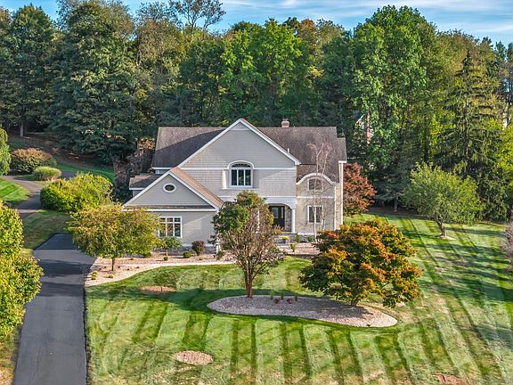 Nestled on a private, picturesque cul-de-sac in Middlefield, this stunning home offers sweeping panoramic views and unforgettable sunsets, creating a serene country retreat. Inside, the great room impresses with soaring 20-foot ceilings, a striking fireplace, and floor-to-ceiling windows that flood the space with natural light. The first-floor primary suite features elegant 11-foot tray ceilings, a romantic fireplace, a luxurious spa-like bathroom with a large walk-in shower, Jacuzzi tub, and a custom walk-in closet. The open floor plan offers abundant light and space throughout, while the eat-in kitchen is a chef's dream - featuring ample cabinetry, a large center island, and stunning new quartz countertops. Upstairs, you'll find three additional bedrooms and an office with spectacular views. The massive finished basement provides endless possibilities, including a potential in-law suite, with a walk-out slider and full bathroom. Step outside to enjoy the 800-square-foot deck leading to a natural stone patio with a charming arch wall - the perfect setting for a cozy fire pit and outdoor entertaining. This peaceful retreat is beautifully designed for comfort, style, and versatility - all conveniently located while offering the serenity of country living.