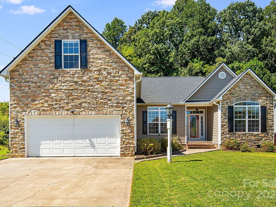 Beautifully maintained, move-in ready home located only minutes from Asheville, Biltmore Park, and Hendersonville. This home features an open floor plan with a cozy living room, vaulted ceilings, fireplace, and formal dining area. The kitchen features a new dishwasher, microwave, and refrigerator. Retreat to the spacious primary suite featuring a walk-in closet and ensuite bath with a jetted soaking tub and rainfall shower. Two additional bedrooms feature new carpet and the bonus room over the garage provides the perfect flex space for a home office, gym, or guest area. Thoughtful updates include a NEW roof, NEW fence, and freshly stained deck. Additional highlights include a tankless water heater, in-house central vacuum, a full home generator for peace of mind, and 2-car garage. Enjoy outdoor living perfect for entertaining with a generous deck, level fenced-in yard, and firepit. Community amenities include a pool, clubhouse, and walking trails provided by the desirable subdivision of Waightstill Mountain.