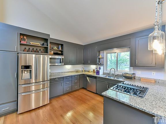 Bright, updated, one level home tucked back on cul-de-sac lot only four quick miles from many of Durham's sweetest spots. Cathedral ceilings & great flow combined w/ open living spaces and a large deck make this home perfect for entertaining. Updated kitchen w/ granite counter tops, ample work space & wide counter seating for helping or hanging out. Master suite has updated bathroom, sun room & private deck. New roof in 2018, HVAC 2014. Whippoorwill Park w/ lit tennis courts & ball fields 8min walk away!