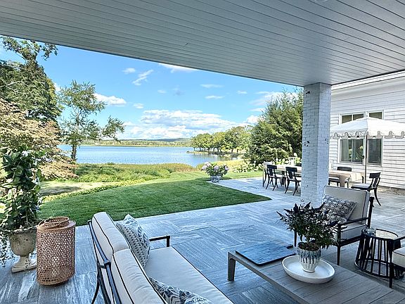 Fresh Update for a Classic Connecticut Home - Discover a beautifully restored 1955 waterfront classic. Stunning panoramic water views, privacy and walk-to-town convenience. Ascend to the family room, crowned with cathedral ceilings and expansive windows that invite the breathtaking views of the Connecticut River. A Danish gas fireplace adds a touch of sophistication, creating a cozy yet chic atmosphere year-round. At the heart of the home lies a vast chef's kitchen, a culinary masterpiece equipped with top-tier appliances and exquisite millwork by a master craftsman, ensuring both style and functionality. There is a butler's pantry, an elegant paneled library with water views, as well as an outdoor shower in the garden. The entertainment quotient soars in the spacious playroom, complete with a vaulted ceiling, a chic bar, and a sub-zero wine cooler, setting the stage for memorable games of ping pong and billiards. This riverside haven is graced with two large, sumptuous en-suite guest rooms. An entirely new primary bedroom suite was added to the original house in 2021. Gorgeous views from the primary bed as well as an extra-large dressing area and jaw-dropping primary bathroom with vaulted ceilings. Part of the restoration and renovation was the addition of a sleek new garage, housing a gym designed to cater to the wellness-minded. Step outside to the grand granite-covered terrace, a stage for outdoor living, where you can savor al fresco dining or enjoy sitting out under the stars at the fire pit. The owner took great care to keep the charm of the original house while expanding it for modern living. Whole house generator and whole house water filtration system. Exercise room/Gym over the garage is climate controlled. Total renovation with copper gutters, standing-seam roof was completed in 2021-2022.