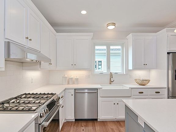 - Features: Flooring - Wood, Countertops - Stone/Granite/Solid, Kitchen Island, Cabinets - Upgraded, Open Floorplan, Recessed Lighting, Stainless Steel Appliances, Gas Stove, Lighting - Pendant, Crown Molding
