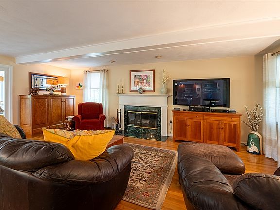 Picture coming home and relaxing on your three-season porch with a Franklin gas fireplace, a good book, and views of the Shawsheen River’s wildlife. This thoughtfully designed 4-bed home blends nature with modern living. The bright kitchen has a picture window overlooking the river, and the spacious main level includes living and dining rooms, both with fireplaces, plus a half bath. Upstairs, the primary suite offers a custom walk-in closet and large en-suite; three more bedrooms share a full bath. Enjoy a farmer’s porch in front and a large rear deck off the porch. The private lot bordered by the river offers peace and serenity. A finished basement adds a cozy family room and laundry. Move-in ready—schedule your showing today!