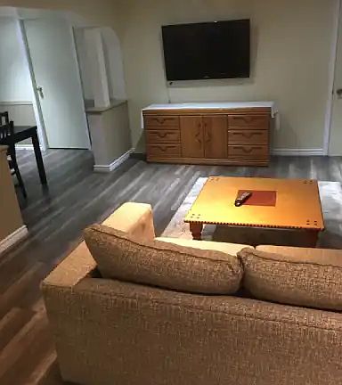 View our newly renovated, large, FURNISHED, 1100 sq ft, two bedroom basement suite, AVAILABLE September 1st. Your potential, future home has an eat in kitchen with full size fridge, stove, and built in microwave. New click hardwood flooring has been installed throughout. The two bedrooms contain furniture suites, and queen size beds. There is also access to an in suite freezer and walk in storage/clothes closet off the kitchen. There is extra storage available in the furnace room. The Laundry is shared; and situated close to your very private back door suite entrance. Small, well trained, dog permitted. The rent is $1600 which includes your utilities. You will only be responsible for Cable and Internet. The Damage Deposit is the same amount. This suite is perfect for a couple wanting extra space, a small or single parent family, or shared accommodation. Your new location will be three blocks off Broadmore Blvd. and Sherwood Drive traffic circle, across the street from New Horizons School. References required. A one year lease is available. Viewing is possible anytime with 24 hours notice.