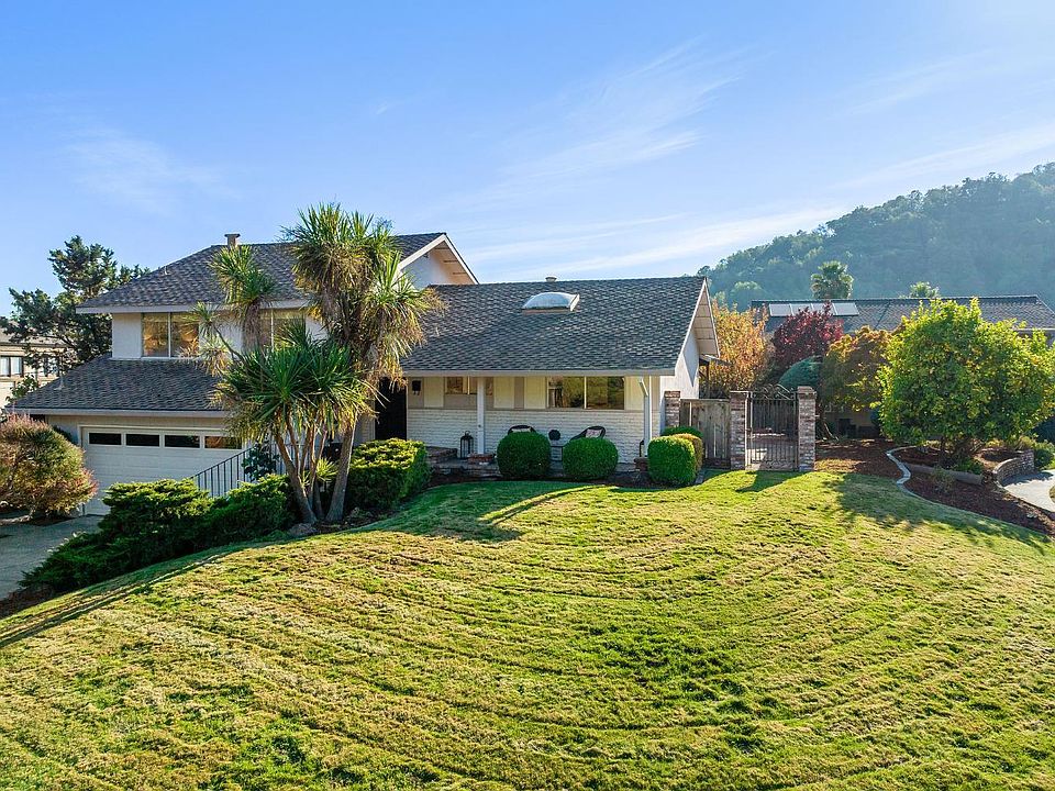 Incredible opportunity to be only the second owner of this very special home in the Marinwood Estates neighborhood! Freshly painted & beautifully refinished hardwood floors allow you to move right in & update to your taste. Enjoy 4 bedrooms, 2.5 baths, plus 2 large living spaces. The home is split into 3 levels, with just a few stairs in between each. On the top floor are 3 bedrooms, including a primary en-suite as well as a hallway half-bath. On the main level is a large kitchen & living room with gas fireplace & access to the lovely backyard! On the lower level you'll find a bedroom, full bathroom & bonus living room with vaulted ceilings & a second fireplace. Access the backyard from this level as well for easy indoor-outdoor fun! The backyard is split into 2 connected levels, both with large flat areas for entertaining & play! The front curb-appeal will wow you with its majestic rolling hill of front lawn, & brick stairway leading to the cozy front porch. A prized feature of this home is the 50+ year-old community lemon tree, planted by the original owners. Prime cul-de-sac location, close to schools, parks, and the Marinwood Market! Add in a large 2-car garage, & the Miller Creek School District & you are ready to live happily-ever-after in this beautiful home-sweet-home!