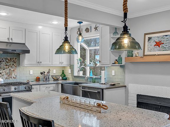 Beautiful Barclay Woods 2 bedroom, 3.5 bath unit with attached garage in Brielle. This stunning townhome offers a custom kitchen with plenty of cabinets and quartz counter tops. It includes stainless appliances, farmhouse sink, custom island with wine cooler and microwave, gas fireplace, and French doors to the deck. The dining room and living room feature crown molding and hardwood floors. The master bedroom with crown molding includes a custom full bath. Guest bedroom with attached updated full bath. Family room/den/3rd bedroom with attached full bath on basement level. Relax on the deck overlooking a wooded buffer area. Wonderful association including pool, tennis, and clubhouse. Great location with just a short ride to beaches, river, shopping, downtown, restaurants and more.
