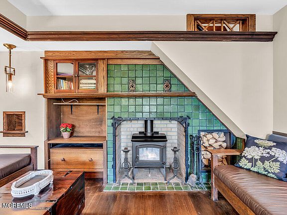 Discover an extraordinary retreat in Atlantic Highlands, high on the hill offering unparalleled ocean, bay & NYC skyline views. Featuring the charm & beauty of the Arts & Crafts style, this home was re-built in 2010 and features architectural detail & finish materials from homes that once graced the Jersey coastal region including American Chestnut millwork & Grueby tile. Entertain in style on multiple terraces & garden patios, or unwind in the gourmet kitchen with top-tier appliances. With accommodations including 5 bedrooms with ensuite baths plus an additional full bath on the first floor - this home can comfortably accommodate you & many guests. The wooded setting provides privacy & tranquility. Close to beach & ferry: 40 minutes to Wall St. Your oasis awaits.