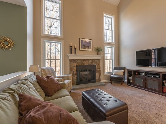 - Liv Dscrp: Flooring - Wall To Wall Carpet, Fireplace, Ceiling - Cathedral, Open Floor Plan, Ceiling Fan(s)