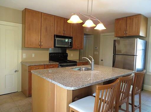 Welcome to 7 Hopedale St. Great water view rental overlooking Hopedale Pond. Updated 2 bedroom , 1 bath half duplex. New high efficiency gas heating system. Amazing kitchen with a very large island for eating or working. Private patio on the side of the home. Grass area in back yard and you are literally right around the corner from a great park with playground, tennis courts and basketball court. You can hear the summer band concerts from the patio. This is a must see rental Open house from 11-12:30 on Sunday the 8th!!