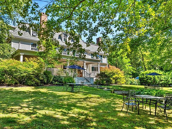 The property's setting is as enchanting as its interiors. Mature trees, stone walls, and sweeping lawns provide a sense of serenity, while lush gardens and vibrant hydrangeas fill the landscape with color. A picturesque gazebo and shaded sitting areas invite you to linger and take in the peaceful surroundings.