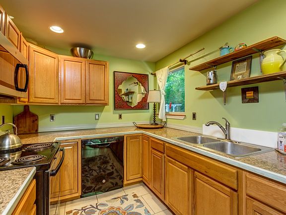 Adorable cottage nicely updated yet still has the original rustic charm in a safe neighborhood. Kitchen w/ample cabinets & stainless steel appl, laminate wood floors, +ceramic tile, claw foot tub & dbl sinks in bath. Also, double-pane windows, air tight free-standing stove, & wrap around deck. Great location w/level access on cul-de-sac. 50 year roof, transferable, AND the golf course, marina & beaches on Lake Whatcom, YMCA, pool, hiking trails, & 24/7 security.