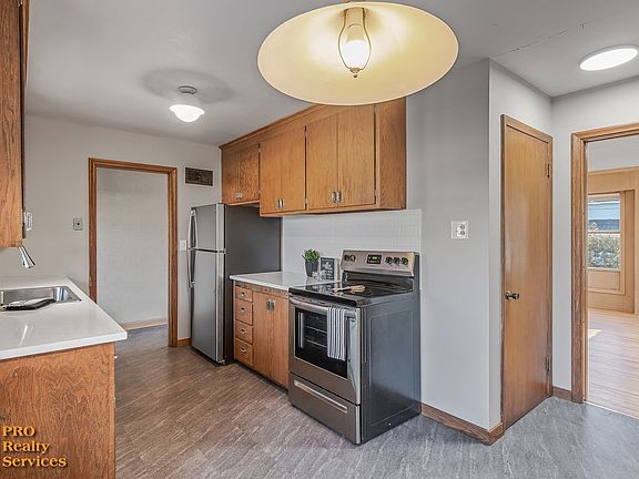 Mid-century modern 4 bedroom, 1 and 3/4 bathroom home with an updated kitchen with stainless steel appliances and quartz countertops! This spacious home also features a walk-out lower level with a bonus living room space and laundry, tons of storage space, LVT flooring, a large backyard, and a 2 car attached garage! Three of the bedrooms are located on the main level, and the fourth bedroom is located downstairs.