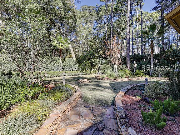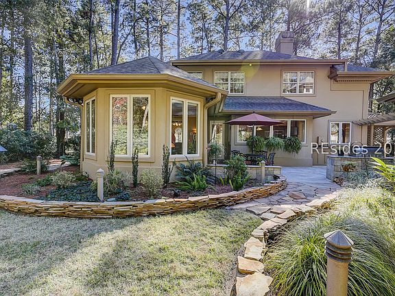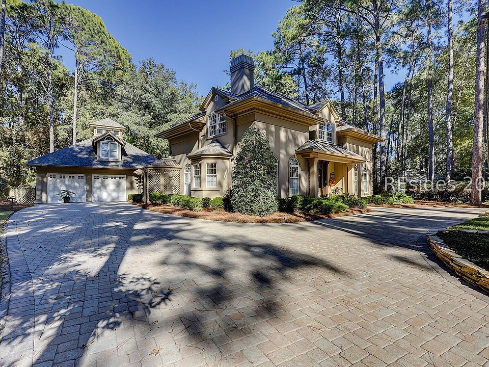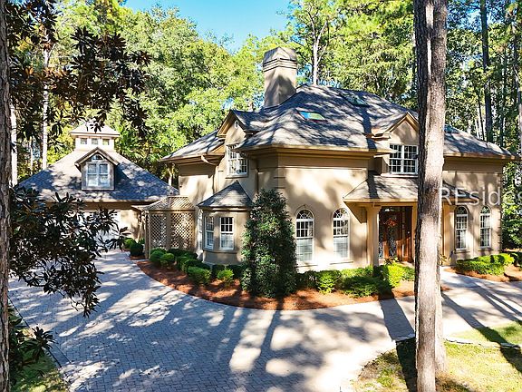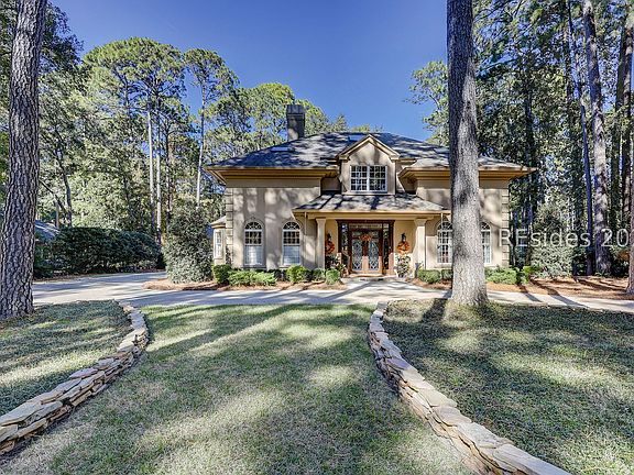 Stately Hickory Forest home in a Park-Like setting within walking distance to the Port Royal Sound. Situated at the end of a private cul-de-sac on a professionally landscaped homesite including a circular paved drive with decorative stacked stone edged beds and even a backyard Bocce Ball court. This elegant home offers a dramatic 2 story entry foyer with a stained glass skylight and signature staircase. This very open floorplan includes a Formal Living and Dining room, Chef's kitchen with top of the line appliances, Light-filled Carolina room overlooking the manicured backyard, Study\Den and spacious Primary Suite. Oversized heated and cooled 2 car garage, (space for 3rd car tandem), workshop and large bonus room above. Don't miss this special home!!
