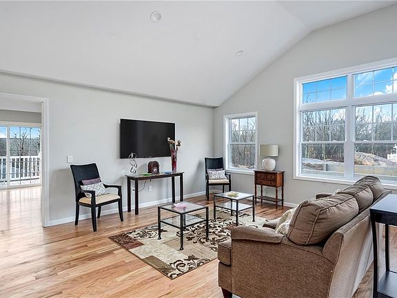 Orchard is a community of upscale homes with NO AGE RESTRICTION. Situated on 24 acres, the Orchard is surrounded by nature and as the name implies, fruit trees abound including apple, pear, peach, and cherry, all for the enjoyment and consumption of its residents. Orchard is located where Western Cranston, Coventry, and West Warwick meet. Number 7 is a single level, 2 car garage unit with an open floor plan featuring 12 foot ceilings, a large living room, dining room and kitchen with granite and stainless steel. Master suite features 10 foot tray ceiling, with walk-in closet, master bath with double sink and a walk-in shower. The master also includes sliding glass doors to a balcony overlooking the natural landscape. Guest room is also well sized to accommodate a guest bed or great space for an office. Plenty of storage everywhere you turn. Full walk-out basement with sliding glass doors and brick paver patio. The reduced condo tax rate of 22.57 per thousand and the low condo fee makes Orchard irresistible!