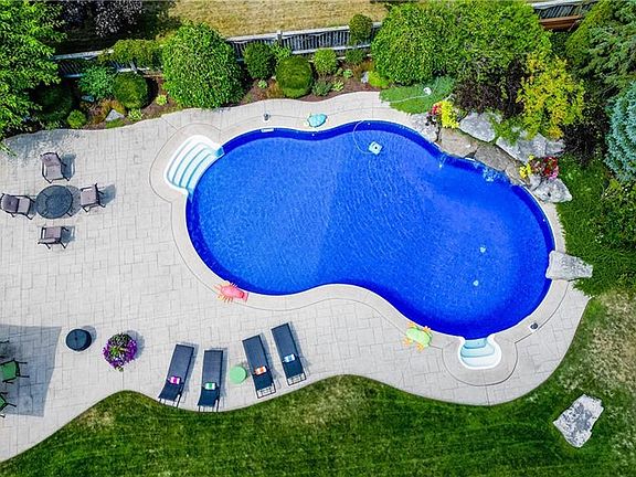 Why travel when you have this Muskoka Inspired back yard. Rare offering of a family home of this magnitude on an oversized estate lot. From the moment you approach the generous sized paver stone drive you will notice classic architectural touches. Upon entry to the foyer you will be drawn to the designer staircase open to above and below. The formal living room has the bonus of a side porch. The formal dining room is perfect for family gatherings and is complimented by the butler pantry leading to the large chef's kitchen with b.i. appliances (Miele 5 burner gas cook top, Miele d/w, Kitchenaid double wall oven). The kitchen, breakfast area (with b.i. workspace) and family room w/ f.p. overlook the stunning rear patios and yard. Upstairs you will find 4 spacious bedrooms incl. primary retreat with its own private sitting area and immaculate 5 piece ensuite (completed in '24) affording you heated floor, Toto washlet, Victoria Albert volcanic stone soaker tub and wall fireplace. The main bath gives 2 of the bedrooms immediate access to a double vanity, make up counter and seamless granite shower. The upper laundry with custom wormy maple countertop is convenient. The finished lower level has a games area, large wet bar (with d/w, fridge), rec room with projector/power screen and wall f.p. The three piece bath also houses the sauna which is great after working out in your home gym. Family fun and entertaining is taken to another level out back. Here you have a massive covered composite deck with custom stone wood burning fireplace. The tiered deck leads to a dining area and a covered bbq area. The gorgeous salt water pool (approx 22' x 44') with stone waterfall is perfect for summer days. The poolside cabana is a great place to kick back and relax. The back yard has several mature trees which add to your enjoyment. In addition to all of this you have an 8 person jacuzzi hot tub complete with waterfall. This is a must see showstopper to be fully appreciated.