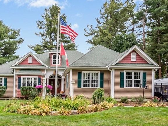 This charming custom built French Country-Styled Ranch home nestles beautifully into a rolling landscape of fabulous gardens with specimen plantings, perennial beds, mature trees, a vegetable and enclosed Blueberry farm.This finely detailed home is an architectural beauty, elegant in design~ French Country décor ~and a floor plan for today's comfortable living and entertaining. It's complete with an In-Law suite, permitted, with its own entry, and an entry to the main house which adds unique flexibility, for family /guests. The cathedral beamed ceiling in the Conservatory/Den, with bow window surround, reminds one of a Hunting Lodge, with gas fireplace,french pocket doors leading to the dining room and kitchen, in an open floor plan. The side entry has a mudroom/laundry area. Three main-level bedrooms include a window lined master suite with spa bath. The main hallway has 2 other Bedrooms,complete with Hollywood bath. Time to live your best life for true privacy & country living !