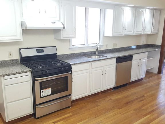 4- bedroom with 2 full bathrooms PLUS a dining room that could be used as an additional bedroom! This is the best of both worlds, blending stylish modern finishes with charming original architecture. This incredibly spacious unit spans 2 floors, with high ceilings and hardwood floors throughout. The stunning eat-in kitchen features granite countertops and stainless steal appliances. 2 beautiful bathrooms, one on each floor. Large bedrooms with tremendous closet space. Private balcony and shared backyard. Two garage spots available ($75 each per month). On-street parking, no permit required. Washer/dryer in basement. Perfectly situated - just steps to Oak Square! Quiet neighborhood with each access to downtown by the 57 Bus and 501 Express Bus, and to Cambridge by the 64 Bus. 5 minute walk to the YMCA (gym, indoor pool) and many restaurants and shops. Under a 10-minute drive to the Mass Pike.