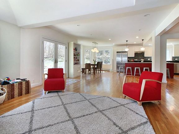 ***Just reduced*** 7 Keane is a traditional looking colonial that is anything but traditional on the inside. The first floor features an inviting fireplaced living room that opens up to a huge great room. The sunny great room features a dining area, skylit family room and cook's kitchen with a granite island (big enough to seat 10), den and mud room. The entire first floor looks directly out to the private wooded lot that directly abuts the Hancock Woods Conservation Area. Four bedrooms on the second floor including a private master bed with a walk-in closet and updated master bath with skylight. . A large finished basement which features a private entrance is great as a play/rec. room or convert to an au pair or in-law apartment. This is a must see.. ***See floor plan in attachments