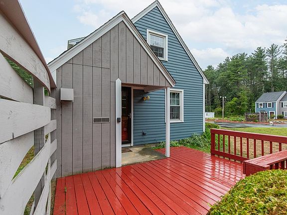 Welcome to this move-in ready End Unit at Woodbury II! This 2-bedroom, 2-bath home welcomes you with a bright living room featuring a cathedral ceiling and open railings to the second floor for an airy, open feel. The eat-in kitchen offers white cabinetry, light granite counters, a breakfast bar, and tile backsplash. A convenient side door off the kitchen leads directly to the deck—perfect for easy indoor/outdoor dining. The first-floor bedroom includes a closet system, and the second level adds a versatile bonus room ideal for a home office or gym. Both bathrooms have been updated. Major updates completed in 2022: new windows, exterior doors, and storm doors. Fantastic location—minutes to the Everett Turnpike, schools, shopping, and local dining.