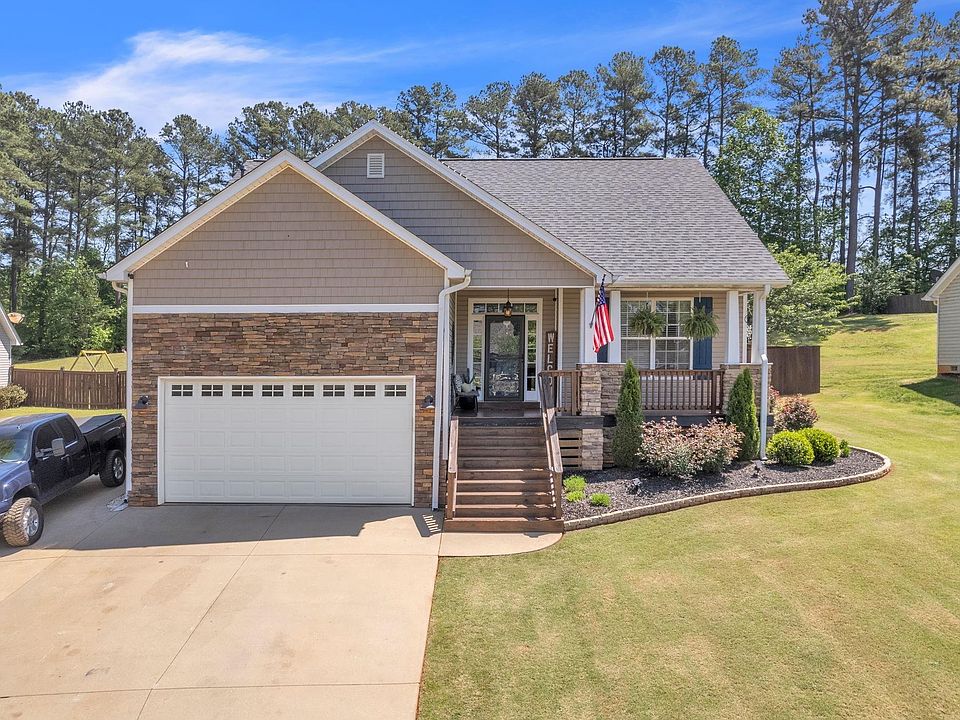 Located at the base of the Blue Ridge Mountains in a small, established neighborhood, this beautiful, well-maintained 3BR/2.5BA home offers a cul-de-sac location, wooded common area and pond. Enjoy the beauty of a rural setting and convenience of living in town. Instant curb appeal greets you with a welcoming front porch, craftsman style stone columns, and extra wide steps. Enter the house to gleaming hardwood floors and French doors that lead to a versatile room, which can be used as a den, office, or formal dining area. The open concept living space, accented by a stacked stone gas fireplace and spacious dining area, is perfect for family time or entertaining. The main level master BR and bath have awalk-in closet, double vanity, and separate garden tub and shower. Rooms feature 9 ft. ceilings, wide baseboards, and custom blinds. Upstairs are 2 spacious bedrooms and a full bath. Situated on a .67 acre lot with well-established lawn and mature trees with an oversized metal out building with covered patio area! This home checks all the boxes. Schedule your showing today!