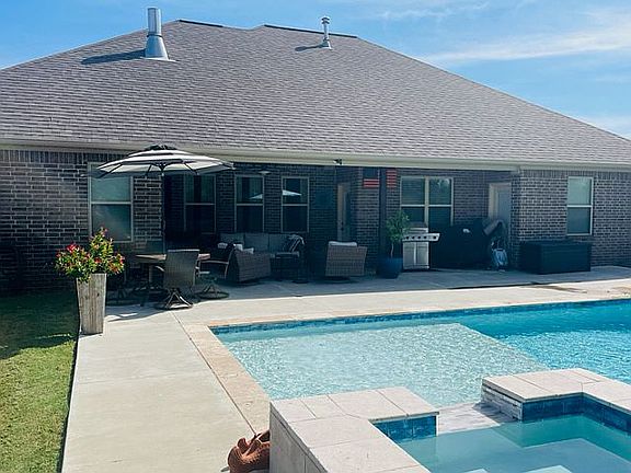 Redlick is the perfect place to land with this awesome Pool/Hot Tub combo in your Yard for Summer Fun. Always stay cool with the over size tanning shelf, which can also be used as a safe area to play with smaller children in the water. This home has all the right Stuff, with Granite, Stainless appliances, Custom Cabinets throughout the home, along with some of the Newest trends in Lighting and of course you will love the remote fireplace surrounded by beautiful bookcases. The kitchen has a breakfast bar for the quick meals and you have a gas cook top, exactly what discriminating chefs prefer. You will love the design of the Stacked Cabinets in the kitchen and we do have a pantry for additional storage. The Master has a box ceiling, and you will love the remote blackout Shades for the windows, that are perfect when you want an afternoon nap. This home does offer a Kohler 20 K Generator, so you never have to worry about losing power here no matter the weather. This is a must see home, the sellers have taken care and added many upgrades to make your life more enjoyable such as a Nest Thermostat, and a Security System that will transfer with the Sale. This home is one of a kind with the Gladiator Storage system for Dad in the Garage, which helps you keep your Garage so organized and Clean and allows you to still park those longer vehicles in place. Additionally you will love the layout of this home, so open with a full 4 bedrooms and the closets are larger than you would imagine. One hall closet is large enough for your Christmas Tree Storage, you decide.