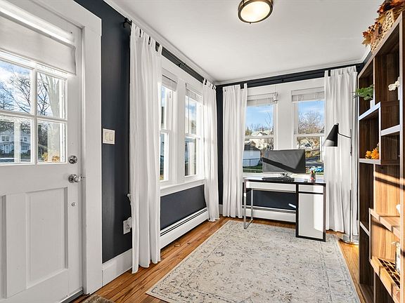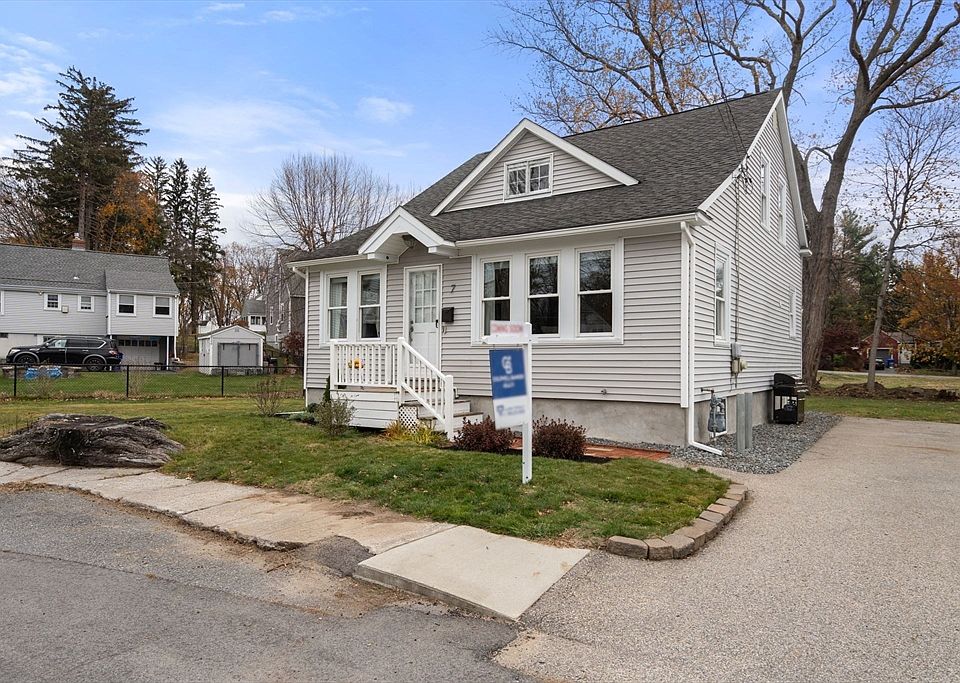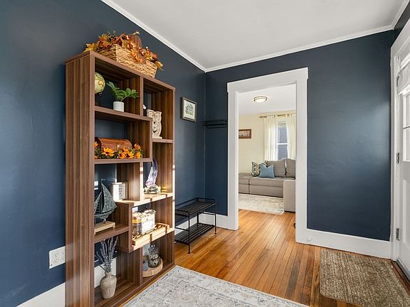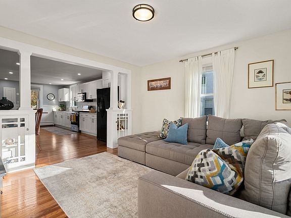 This charming, turnkey Cape is as inviting as it is practical—set on a peaceful street just seconds from downtown. With newer siding, windows, and a lovely patio, the curb appeal is undeniable. Inside, the flexible floor plan offers the option of a first-floor bedroom and full bath, ideal for guests or single-level living. A welcoming front room serves beautifully as a home office or mudroom, opening to a light-filled living room with handsome built-ins, columns, and generous natural light. The dining area flows seamlessly into an expansive, nearly new kitchen featuring stainless steel appliances, abundant cabinetry, ample counter space, and a large pantry. Upstairs, two comfortable bedrooms and a second full bath complete the picture.Out back, enjoy the new patio, level yard, and handy storage shed. Additional updates include a newer furnace, lighting, blinds, chimney work, sump pump. Truly move-in ready with timeless Cape charm in a prime location