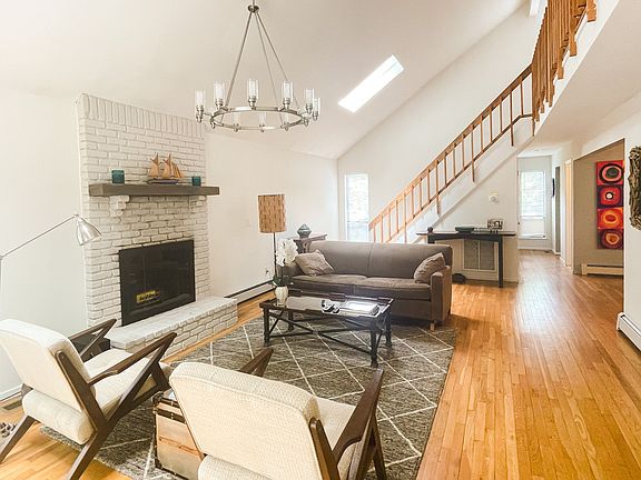Enjoy this contemporary 3 bed 2.5 bath, saltbox home in one of the most desirable waterfront communities in Springs. This private neighborhood beach community has an eight acre waterfront recreation center which features bay beach with in-season lifeguard, marina, kayak/ paddle board racks, outdoor picnic area with outdoor grills, bocce court and play area for the kids. House has many updates including a new kitchen with stainless steel appliances and semi-custom cabinets, large pane window which offer partial water views of Hog Creek. There is a separate dining room and spacious living area with a cathedral ceiling, skylights and wood burning fireplace. Both the dining and living area feature new Kichler chandeliers. The first floor primary bedroom has a ensuite bath with crown molding and patio door with direct access to the back deck. There are two additional bedrooms upstairs. They share a large, bright, new full bath with crown molding, double vanity with quartz countertop, soaking tub with Italian porcelain tile surround and a skylight. The house has Suffolk water connection and a well that can be used for irrigation. The property has been well maintained with an updated roof, hot water heater, boiler and new indoor oil tank with a certified abandonment of in-ground oil tank.Close to many of Springs restaurants and delis including: Rita Cantina, Bostwicks, Springs General Store and Harbor Bistro. With several acres of reserve land in the rear of the the house and an acre of waterfront reserve land across the street, you have plenty of privacy.