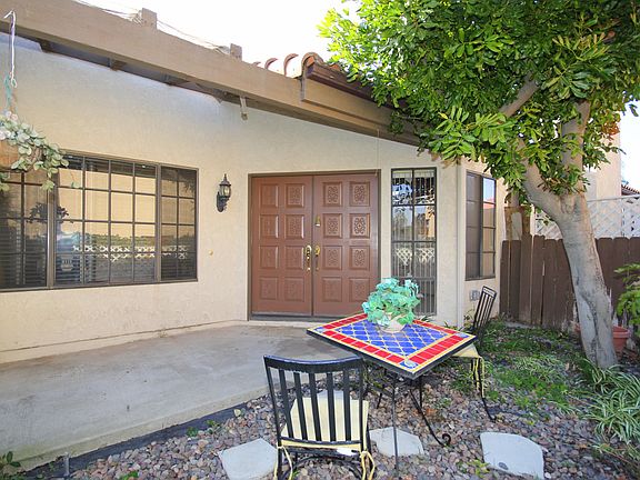 Well maintained single story home in Phillips Ranch located on a cul-de-sac. Privacy gate up front with a cozy front patio area. Enter through double doors to this open floor plan which offers open beamed ceilings in the living and dining rooms. The living room features a fireplace and is open to the adjacent formal dining area. The family kitchen offers an island, abundant cabinet space, tile counters, recessed lighting and an eating area. The family room offers a vaulted ceiling, wood laminate floors, two ceiling fans and a slider to the backyard. The spacious master bedroom offers a vaulted ceiling, large closets and a ceiling fan. The master bathroom features tile floors, dual sinks and a shower. There are two other bedrooms and a second full bathroom as well. The backyard features a covered patio with a concrete slab, grass area, planters and a spacious side yard. There is a two car garage and a driveway for additional parking.