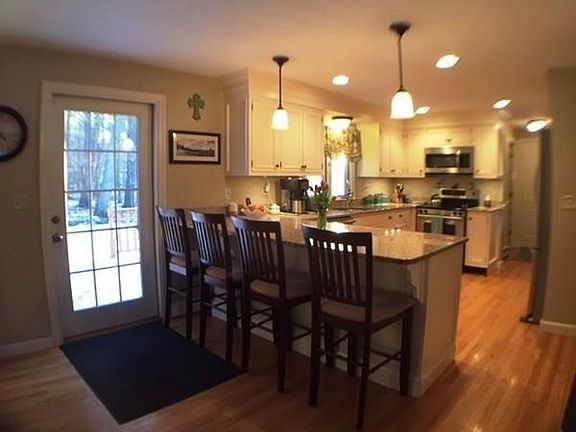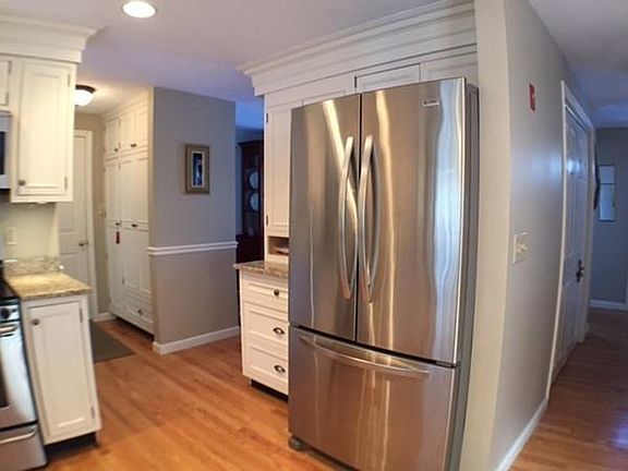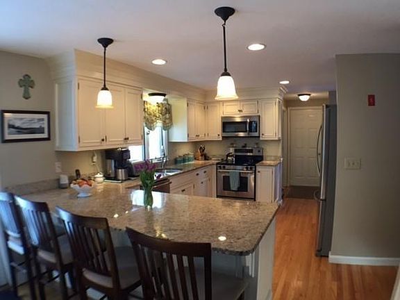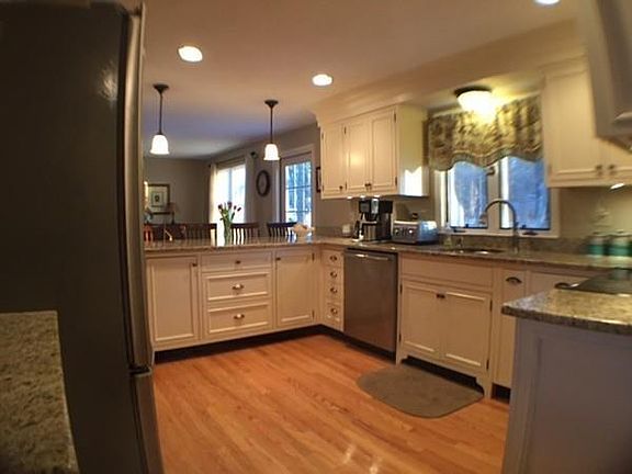 Traditional New England Colonial located on a level and beautifully landscaped lot at the end of the cul-de-sac. This home offers wonderful custom features & many updates. Large living room with fireplace, built-ins, and hardwood flooring. Formal dining room with hardwood floors and chair rail moldings. Kitchen features beautiful over-sized custom built cabinets with molding, granite counters, recessed lighting, and hardwood floors. Second floor offers 3 spacious bedrooms. The master features two closets and second bedroom features built-ins. Nicely finished basement with a family room, and a home office with built-in book cases. The two car garage features a work shop with custom built cabinets. Exterior offers cedar siding, a level lot with privacy, large wood deck, and a custom built shed.