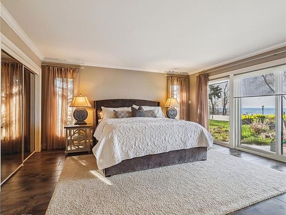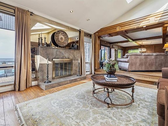 Welcome to 7 Lakegate Drive a truly exceptional waterfront estate offering luxury, privacy, and rare direct access to the shores of Lake Ontario. This custom-built home spans over 3,800 sq ft of elegant, single-level living designed for comfort and sophistication. Need additional space? The expansive, finished lower level provides ample room for entertaining, recreation, or multi-generational living. Crafted with timeless elegance and premium finishes, this home features wide-plank oak flooring, granite countertops, cathedral ceilings with skylights, and an open-concept layout that seamlessly connects multiple living and entertaining areas. The chef’s kitchen is a gourmet dream, while the formal dining room with adjacent wet bar, oak paneling, and crown moulding elevates every gathering. The bedroom wing offers three generously sized rooms, including a luxurious updated primary suite with a spa-inspired ensuite, custom walk-in closet, and walkout to a private patio retreat. Step outside to your own resort-style oasis. The backyard features a heated inground pool, multiple lounging and dining areas, breathtaking lake views, and a private beach. Situated on a rare double lakefront lot with 175 feet of shoreline and a concrete boat ramp, this property offers endless potential—enjoy it as-is or sever a 70-foot lot to the west. Store all your toys in the oversized 36' x 25' triple garage, complete with four doors including a rear door for easy boat ramp access. This is truly an unmatched property, perfectly suited for a discerning buyer looking to create lasting family memories in an extraordinary lakeside setting