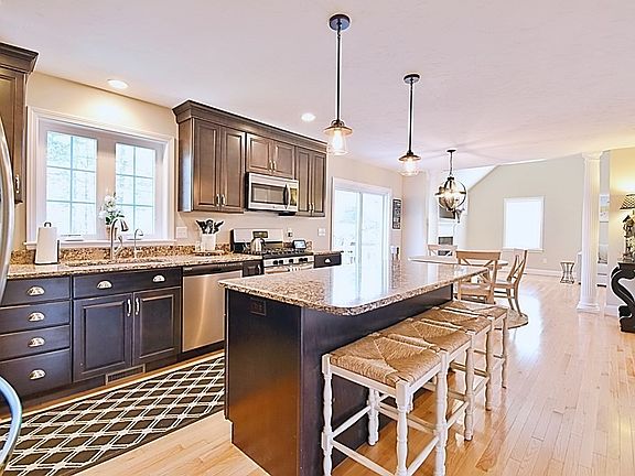 New to the market is this gorgeous colonial in the Lake Boon area. Beautiful custom eat-in kitchen w/granite and ss appliances. A walk-in pantry updated w/granite meets all your kitchen storage needs. Glass sliders off the kitchen lead out to the deck that overlooks the well-manicured lawn which is updated w/new loam/grass and an irrigation system. Kitchen opens to the large family room w/vaulted ceilings and a cozy gas fireplace. Formal DR has wainscoting and crown molding accents. Additional room can be used as a first-floor office or other living space. Whichever suites your needs! ½ bathroom and laundry are located on the first floor. Upstairs has a spacious master bedroom w/vaulted ceiling and walk-in closet. Attached master bath has double sinks and tiled shower w/glass door. There are 3 additional bedrooms that share a full bath. Finished basement can be your mancave or kids playroom/hangout space. Enjoy your favorite water activities w/your Lake Boon access. Welcome home!