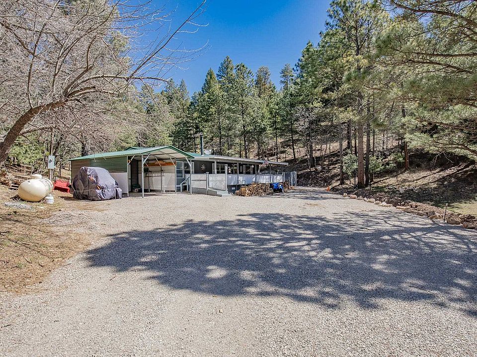 Excellent mountain retreat located between Cloudcroft and Mayhill, NM. This 3-bedroom home is on just over 1 acre. View deer and elk almost daily from the large, covered deck. The layout features a split floor plan with the primary bedroom and ensuite bath on one side and the 2 other bedrooms and 2nd bath on the other side of the home. Tastefully updated kitchen with quartz counters, wood stove in the living room is accented with lovely rock work. The wood flooring is beautiful and functional. Plus a carport and storage for vehicles and mountain toys. Mountain homes at this price are few and far between. Ask for a full list of updates! View the 3D tour and then call today to schedule your private showing.