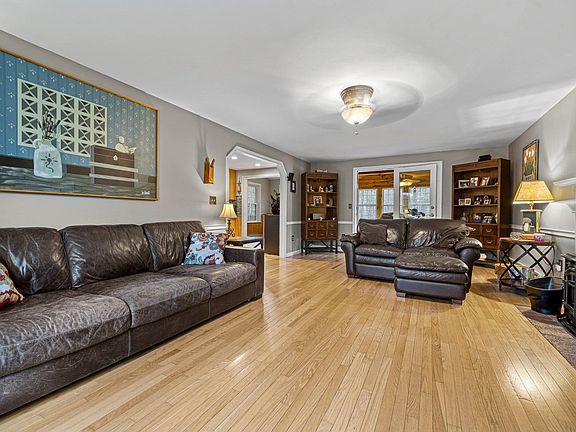 Wonderfully maintained home on 2.39 acres with large lush lawn, pool, shed, hot tub and all new trex decking. Hardwood floors throughout the entire first and second floor. Kitchen with all stainless appliances, double ovens, granite counters and opens to a large family with pellet stove fireplace insert, sunny and bright 3 season porch, dining room and living room with an additional office and a half bath on the first floor. Second floor has 4 bedrooms and 2 baths, primary bedroom has large bathroom with double sinks, and bedrooms all have hardwood flooring. This house will not disappoint.