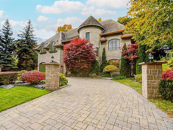 This spectacular, custom-crafted, architecturally designed 23-year-new residence is nestled on a quiet cul-de-sac in the prestigious St. Andrew-Windfields family-friendly neighborhood. Situated on a 270 ft wide private treed lot (15,750 sqft) with park-like yards, it offers over 6,500 square feet of luxurious living space, including a 1,670 sqft separate-entrance basement.This home features a striking four sides stone exterior and soaring ceilings. A circular iron staircase anchors the elegant interior, where every bedroom includes its own ensuite bathroom. 2 kitchens side by side on main floor. The spacious primary suite offers a large sitting area and a 6-piece ensuite, while the second-floor laundry room adds daily convenience.The unique third-floor loft showcases a vaulted ceiling, open-concept office, bedroom with 4-piece semi-ensuite, and a huge home entertainment area, adding architectural flair. The open-concept lower level, with a separate entrance, includes a nanny room with 4-piece ensuite, an extra powder room, and plenty of storage-providing the perfect setting for family gatherings and entertainment.The circular driveway enhances curb appeal and provides ample parking. The home is impeccably maintained and in immaculate condition, features two central air conditioners (2014), two newer furnaces, two sump pumps, a double weeping tile system, and an HRV. This one-of-a-kind home is ideally located close to highways, parks, and top private schools, and within walking distance to top-ranking Owen PS and York Mills CI-offering the perfect blend of sophistication, comfort, and convenience.