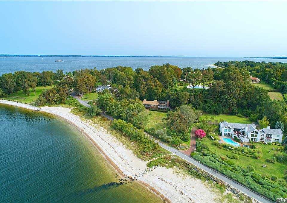 PRIME BEACHFRONT OFFERING Best waterfront value in Sands Point, 180 degree views of Manhattan. Enjoy beach living with magnificent sunset views on your private extra wide beachfront! This contemporary style residence consists of 2.68 acres in total ( 2.1 acres of land and .58 acres of private beachfront ), 4 bedrooms, 2.5 baths, separate office, open great room with high ceilings, fireplace, walls of windows, 3 exposure, overlooking beautiful sunset views. Walk-out lower level, attached 2 car garage, and private driveway.