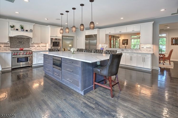 Completely Remodeled Ranch located at end of a cul-de-sac has it all! Absolutely ideal for year round entertaining, set on over one private acre with in-ground pool and private patios. Home features 5 bedrooms with all new baths throughout. The Custom Gourmet Kitchen was designed for fabulous entertaining. A Chef's Dream Kitchen- the 10' x 5' quartz countertop is the focal point of the entire space. The custom lighting, all stainless appliances, wet bar and 8' Anderson sliding French door access to blue stone patio is truly amazing!! The formal LR w gas fireplace is open to kitchen and patio. Steps away to the formal DR w new Anderson windows and chandelier. FR features additional storage and access to a cozy front patio. The primary suite w access to patio- gorgeous full bath, walk-in closet and private wing- ideal multi generation living quarters.The wing of 4 additional Bedrooms feature spectacular, contemporary design full baths- custom tile, vanities, flooring, fixtures and lighting. The 4 bedrooms all have mirrored double closets, lighted ceiling fans and hardwood flooring. Lower level- ideal for home office, exercise or rec room. Endless outdoor entertaining options are made possible by the large blue stone patios and private in-ground pool, great lawn area and half basketball court. Enjoy total privacy and easy one floor living in this gracious home and prestigious location. Whole House Generator! Driveway repaved 2019- Close proximity to downtown. Highly Ranked Schools! A MUST SEE
