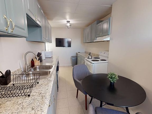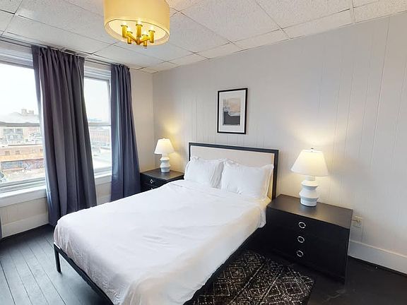 Features modern tiled baths, large windows for plenty of natural light, modern eat-in kitchen with stainless steel appliances, granite counter tops, laundry in building. No pets. Street parking.