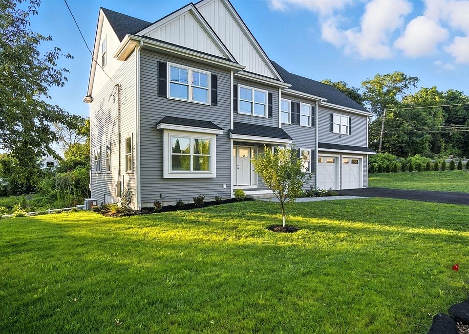 Incredibly thoughtful floorplan in this classic new construction colonial on Woburn's West Side. Walk in from the 2-car attached garage directly into a convenient mudroom which offers a 1/2 bath and two large closets. Hardwood floors span the entirety of the home which begins with a stunning kitchen with large center island, built in China hutch, stainless appliances and quartz countertops. The kitchen is wide open to an eating area with sliders to a back deck. A formal dining room and large fireplaced lfamily room complete this level. Upstairs find 3 large bedrooms, a full bath and separate laundry room before you head to the private primary suite which boasts over 700 sq ft of space, a stunning private bath and two walk-in closets. The basement has been finished to accommodate more living area and features a full bath and sliders which lead to a lovely patio with views of the beautifully hardscaped backyard. The home's prime location is convenient to Four Corners, Woburn Center & mor