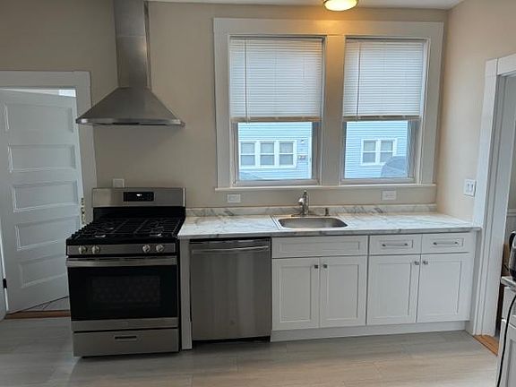 Beautiful - completely updated 1+ bedroom, first floor apartment in 2 unit Victorian home. This apartment features gleaming hardwood floors, dining room with built ins, living room with fireplace (decorative use only), double pocket doors opening into main bedroom, 2nd room perfect for at home office with access to outside, gorgeous brand new kitchen with lots of cabinet space, granite counters, stainless steel appliances, gas cooking, dishwasher, new tile floor, mud room off kitchen with washer and dryer and another exterior access ( 3 in total ), new bathroom off kitchen, PLUS - BONUS full finished basement with bar area!! Ample off street parking,