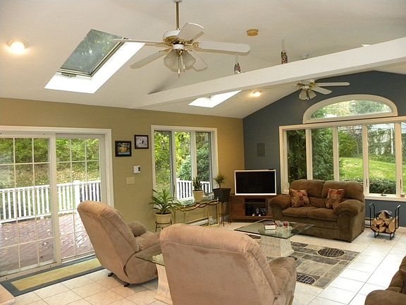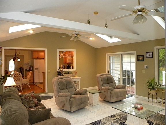 - Fam Dscrp: Recessed Lighting, Ceiling - Cathedral, Ceiling Fan(s), Balcony / Deck, Slider, Window(s) - Picture, Main Level, Open Floor Plan, Flooring - Stone/Ceramic Tile, Deck - Exterior, Exterior Access, Wood / Coal / Pellet Stove, Handicap Accessible, Decorative Molding