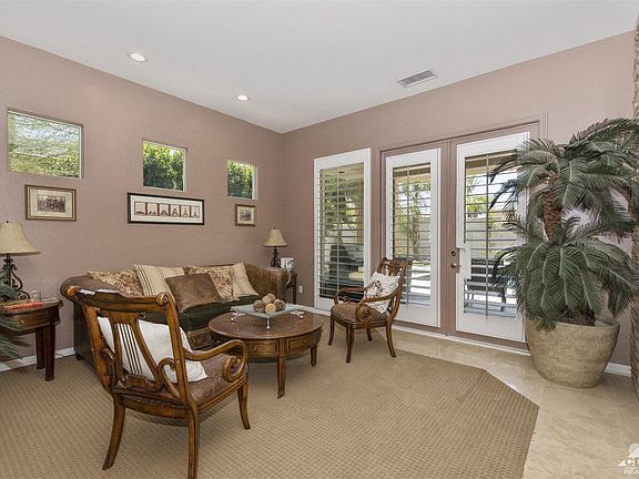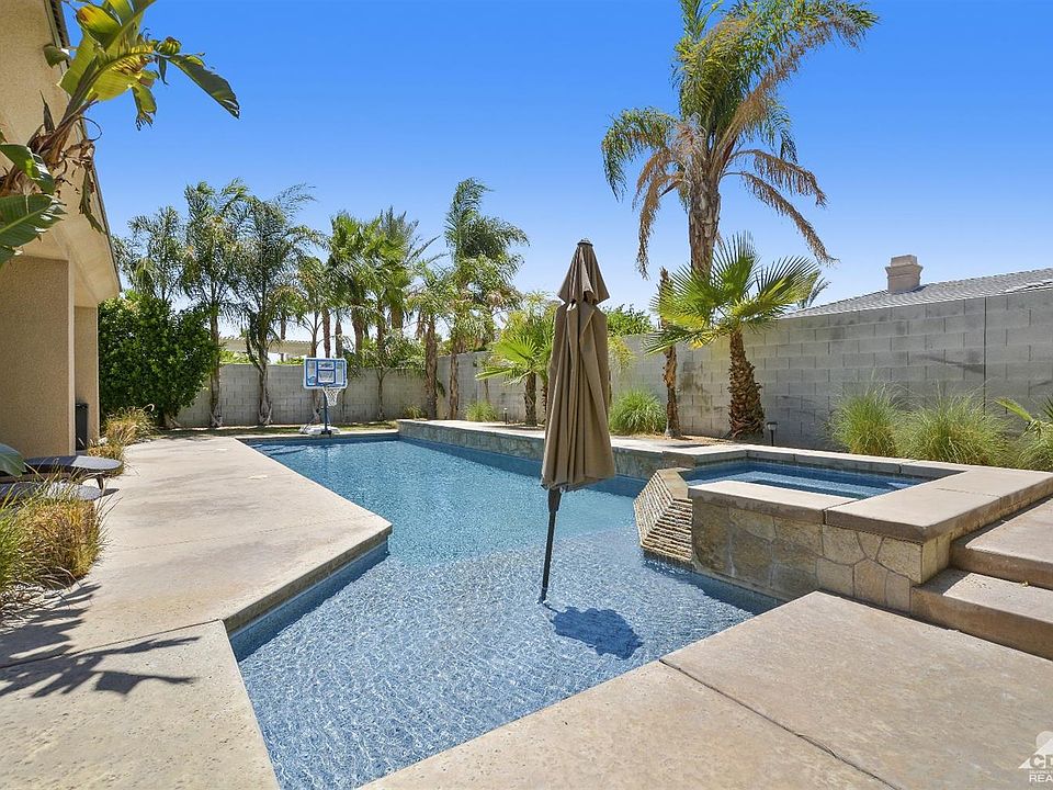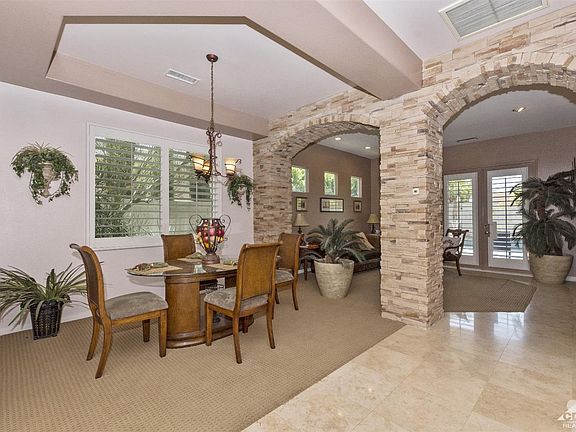 Located in the Rancho Mirage's luxurious Versailles development, the residence is served by Imperial Irrigation District and built on a 10,000 square foot lot. Constructed in 2004, the three bedroom, two and three-quarter bath home has been appointed with stone on the fireplace providing a hearth to different living spaces. Upon entering the foyer, a gracious dining area separated by stone arches, warmly leads you into a living/family room. Throughout, windows are dressed with shutters and blinds allowing for sun in the winter and cooling during our beautiful desert's heat. The master bedroom has a separate tub and shower, two separate vanities and a spacious walk-in closet. The efficient kitchen is graced with granite counter tops and stainless steel appliances. Pool and spa complete the stunning dwelling as do a three-car garage. Lastly, the home is a five minute drive to supermarkets and shopping. It's a complete and perfect paradise.
