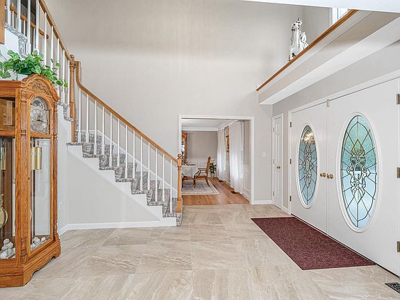 This residence truly has it all under one expansive roof, highlighted by a rare main-level, 1,500 sq. ft. IN LAW suite. The suite’s remarkable, oversized living room must be seen to be appreciated ideal for multigenerational living, long-term guests, an au pair, or a luxurious first-floor primary alternative. With generous proportions and seamless proximity to the main home, it offers independent everyday living without sacrificing connection. Beyond the in-law, a dramatic entry opens to a grand foyer that sets the tone for the entire home. The first floor includes formal living and dining rooms and a beautifully updated kitchen with custom cabinetry, quartz countertops, and high-end stainless steel appliances. An oversized family room with vaulted ceilings and a cozy gas fireplace makes entertaining effortless. Just off the family room, a three-season porch overlooks the serene backyard complete with a hot tub so you can unwind in style nearly year-round. Upstairs, the primary suite impresses with a massive walk-in closet and a spa-like ensuite featuring a tiled shower and soaking tub. Three additional spacious bedrooms and a full bath complete the second level. The pristine lower level offers versatile spaces including a craft room, half bath, wine room, and easy potential for a home gym and hobby needs are covered. Even the three-car garage elevates with brand new epoxy flooring.Perfectly situated at the end of a private cul-de-sac on over 2 acres.