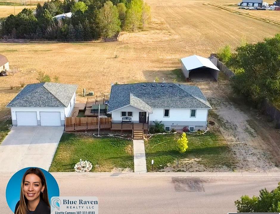 This stunning home truly has it all! Ideally located just minutes from town on a spacious 25,619 sq ft lot, this 5-bedroom, 3-bathroom home offers 2,640 sq ft of finished living space and was built in 2012. Designed for comfort and functionality, it features main floor laundry, central air, and thoughtful upgrades throughout. The fully finished walk-out basement includes a theater room and wet bar, perfect for entertaining. Step out onto the newer deck that seamlessly connects the home to the detached 2-car garage, complete with a hot tub for relaxing evenings. Additional highlights include an inviting front porch, a fenced backyard, and carport. Ample space both inside and out. Don’t miss this rare opportunity to own a home that checks every box! Call Lizette to schedule your showing today 307-331-8183.