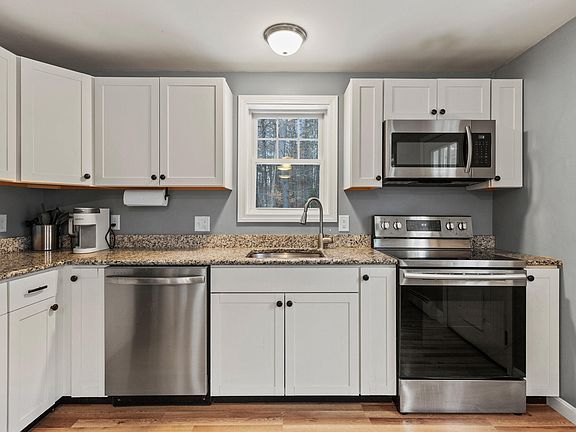 A serene setting. The simplicity of single-level living. Built in 2020, this nearly new, energy-efficient 3-bedroom, 2-bath ranch is the recipe for a lovely life! Inside, large windows & abundant natural light make for boosted moods and happy houseplants alike. You'll adore the dine-in kitchen's granite countertops, stainless steel appliances, and sizable pantry. Cozy nights curled up on the couch are yours for the taking in the seamlessly situated living room. The primary ensuite bedroom is a lovely retreat, be it for sleep or a soothing soak in the tub. Two additional bedrooms/multi-use rooms offer space for work, play or rest. A second bathroom completes the main floor. Craving a craft room, office or home gym? The finished basement is ready to serve (plus a laundry room & plenty of space for storage!). Outside, 1.5 level acres, a quiet dirt road and an adjacently positioned snowmobile trail are a nature lover's dream. This property is a part of the Lake Arrowhead HOA, which offers two clubhouses (complete with pools, fitness facilities and games) and exclusive access points to Lake Arrowhead. From food at the Town Hill Grille & Dough Boy Donuts to disc golf, fishing in the lake or taking in the view of Mt. Washington from the Sokokis lookout, this big-hearted small town will always have you smiling. Start the new year - and your next chapter - in this happy home!
