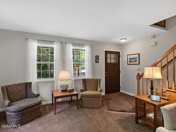 Wonderful 3 bed 3 bath colonial home located on a cul-de-sac in beautiful Greenfield center. This home is in desirable Saratoga School District and just minutes from downtown Saratoga Springs. From the front pristine sitting porch enter this meticulously maintained home to find a cozy living room with a fireplace, eat-in kitchen with a door to the deck, SS appliances and a second-floor laundry in the master bath. The spacious family room with a gas wood stove also has a full bath and sliding glass door that opens to a large newer trex-deck overlooking the beautiful back yard and a private 2.6 acres. The family room could also be used as a first-floor bedroom. The home also boasts a newer updated master & main bath, newer driveway, heated garage with a floor drain and a separate RV garage.